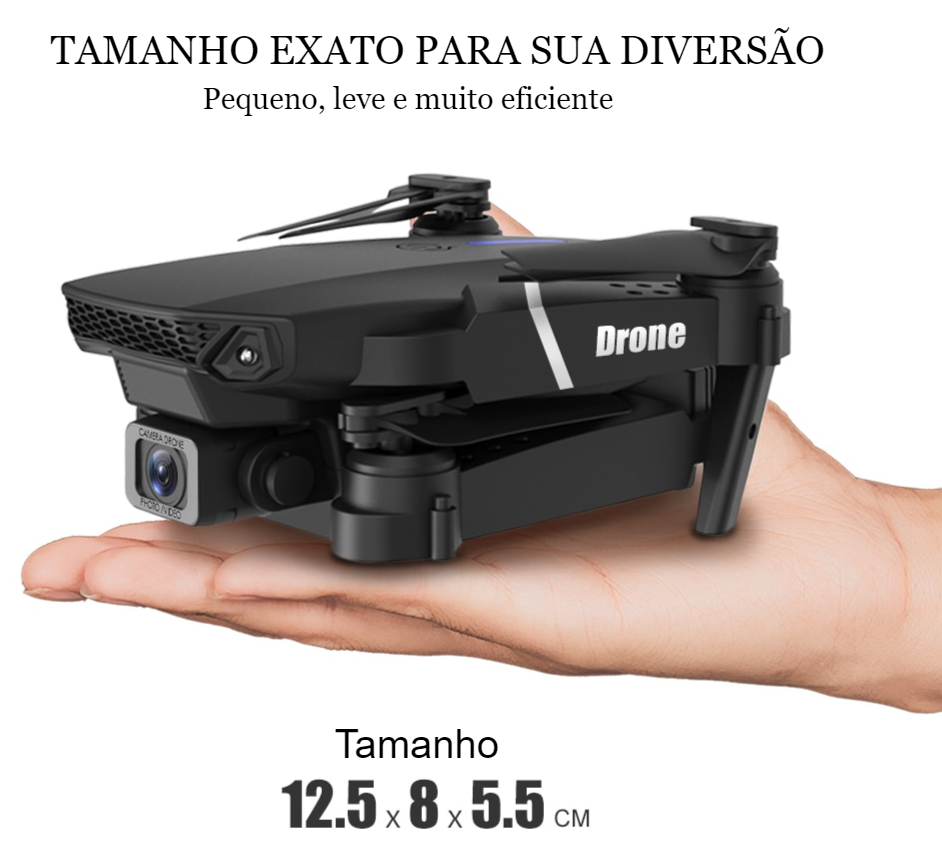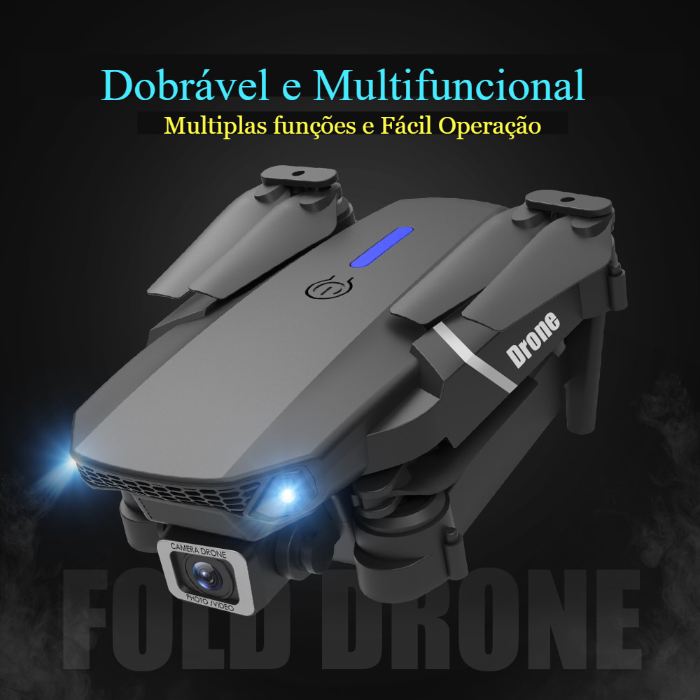Conheça o novo modelo de Drone QUADCOPTER E88 PRO com grande variação de angulação de 90° - 180° graus de ajuste de filmagem em HD 4K, totalmente dobrável, com WI-FI, multi funções e extremamente fácil de pilotar.